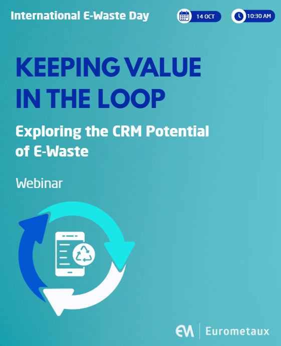 On 14 October 2025 at 10:30 CEST, Eurometaux will host a webinar to mark International E-Waste Day: “Keeping Value in the Loop: Exploring the CRM Potential of E-Waste.”